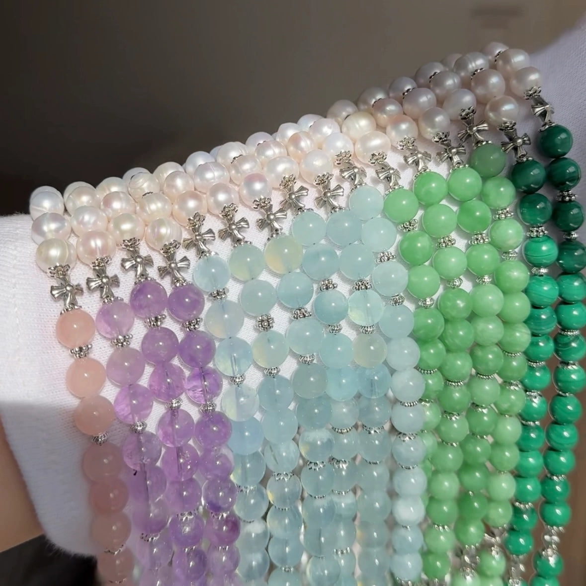 Avec leur éclat naturel et lustre nacré, les perles sont des objets précieux qui symbolisent l'élégance intemporelle, tandis que les pierres fines ajoutent une touche résolument moderne et énergétique à nos créations. Ressentez le confort, l'éclat et la caresse luxueuse des perles naturelles autour de votre poignet avec notre ligne signature.